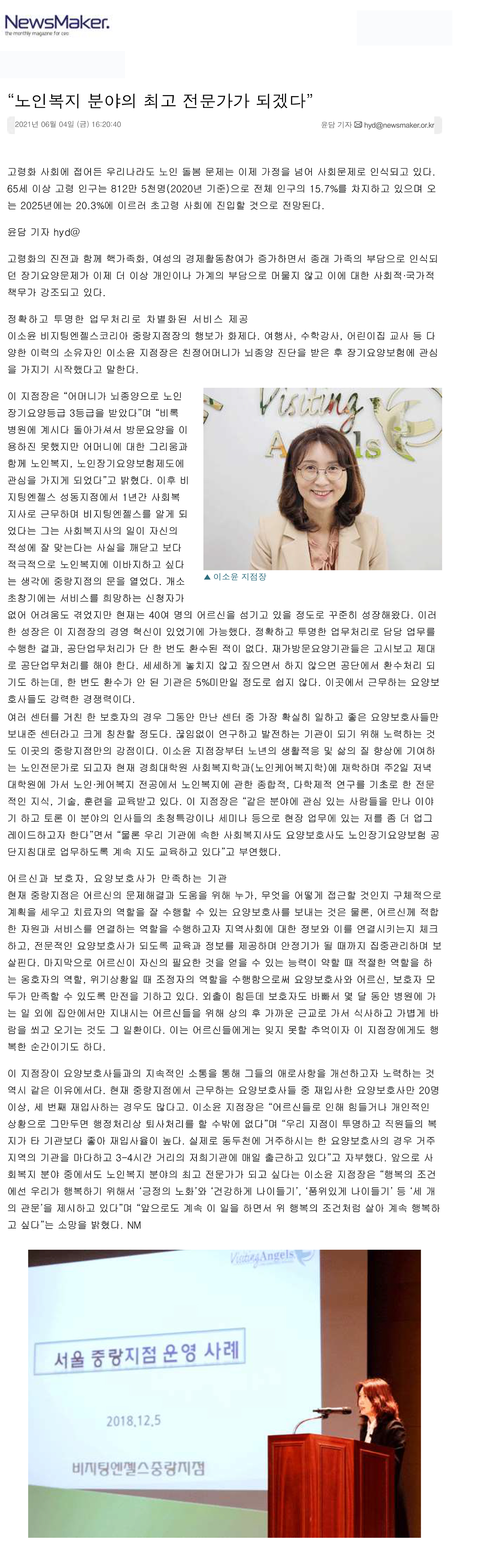 VA소식 미디어 지점 활동 및 소식 채용 채용 신청서 제목[중랑지점] 노인복지 분야의 최고 전문가가 되겠다2021-06-07 17:28작성자비지팅엔젤스 코리아 Information 목록 댓글 [0] 더보기이전[인천미추홀] 내 부모 섬기듯, 온정을 전하는 방문요양센터비지팅엔젤스 코리아 Information2021-06-07다음[일산동구] 교회-주야간보호기관으로 이어지는 선작용 통해 선교사역의 새 문을 열다비지팅엔젤스 코리아 Information2021-06-07 Powered by MangBoard | 망보드 스토어
