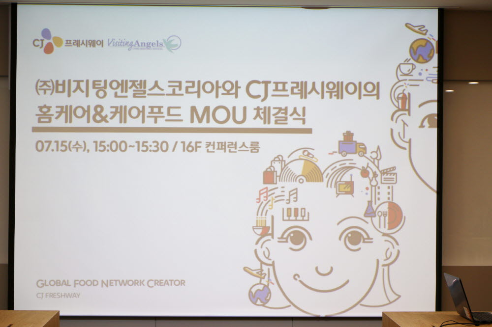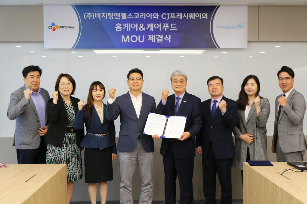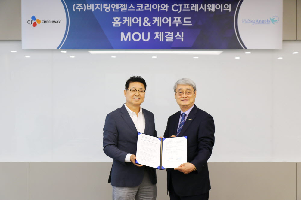 푸드에 대한 시장의 니즈에 주목해 이번 협업을 결정하기로 하였습니다. 양사는 케어 푸드와 더불어 시니어 케어 서비스 등에 관해서도 공동 마케팅을 진행하기로 하며 우호 협력 관계를 더욱 강화 시켜나가기로 하였습니다. 이날 협약식에는 비지팅엔젤스코리아 김한수 대표이사와 CJ프레시웨이