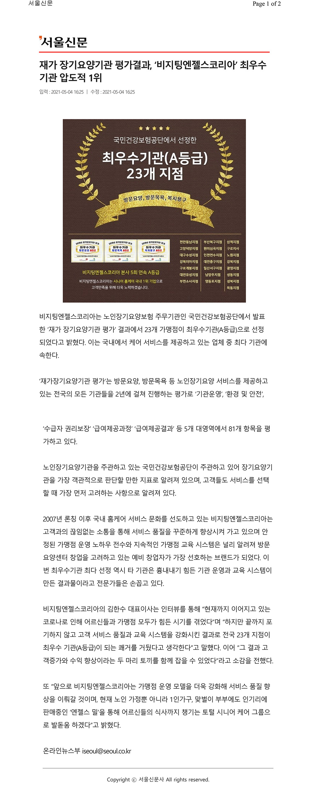VA소식 미디어 지점 활동 및 소식 채용 채용 신청서 제목전국 23개 가맹점 국민건강보험공단 평가 A등급! 국내 브랜드 압도적 1위2021-05-06 19:30작성자비지팅엔젤스 코리아 Information (2021/05/04) 목록 댓글 [0] 더보기이전간편하고 건강한 엔젤스 밀, 그랜드 런칭!비지팅엔젤스 코리아 Information2021-05-06다음비지팅엔젤스코리아, 2021년 6월 정기 프랜차이즈 사업설명회[마감]visiting 2021-05-18 Powered by MangBoard | 망보드 스토어