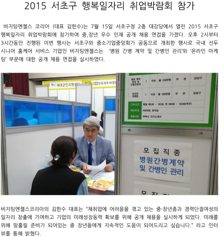 VA소식 미디어 지점 활동 및 소식 채용 채용 신청서 제목2015 서초구 행복일자리 취업박람회 참가2019-12-30 15:36작성자비지팅엔젤스 코리아 Information 목록 댓글 [0] 더보기이전숭실대학교 경영학부 학생 본사 내방비지팅엔젤스 코리아 Information2019-12-30다음(주)비지팅엔젤스코리아 – 숭실대학교 사회복지학과 산학협력 협약 체결비지팅엔젤스 코리아 Information2019-12-30 Powered by MangBoard | 망보드 스토어