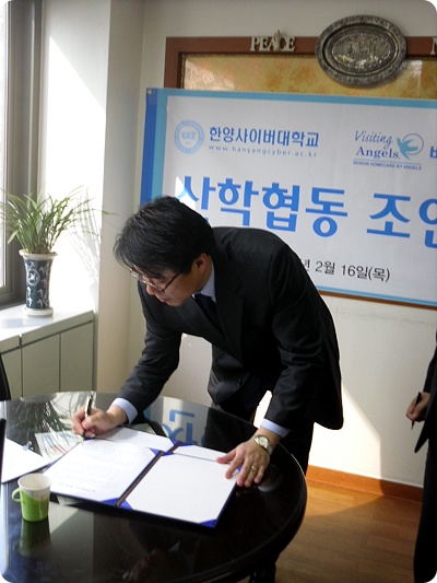 한양사이버대학교 시니어 비지니스 학과 김신영 교수는 산학협력 조인식을 갖고