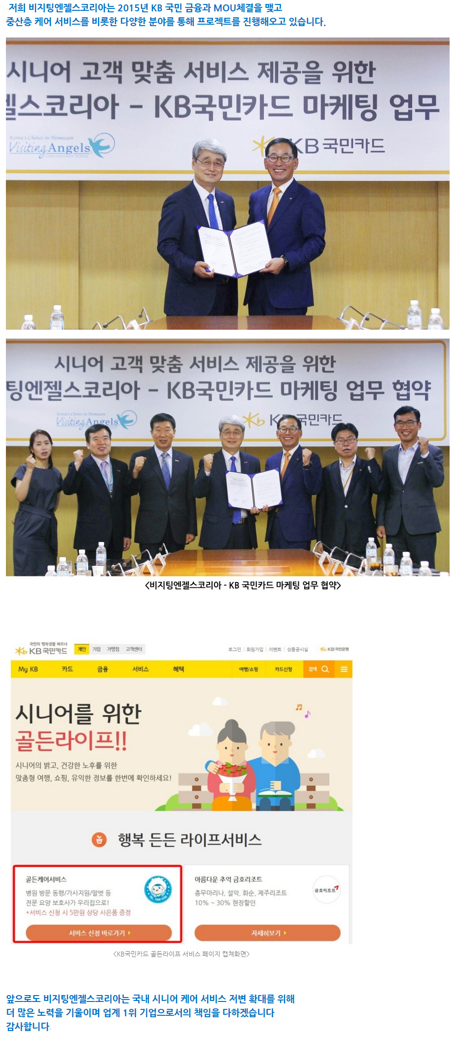 VA소식 미디어 지점 활동 및 소식 채용 채용 신청서 제목KB 금융그룹과 함께 하고 있는 비지팅엔젤스코리아2020-07-09 18:24작성자비지팅엔젤스 코리아 Information 목록 댓글 [0] 더보기이전2020 소비자 만족도 1위 기업 & 브랜드로 비지팅엔젤스코리아 선정!비지팅엔젤스 코리아 Information2020-07-09다음2019년도 국민건강보험공단 장기요양기관 평가 5회 연속 최우수 기관(A등급) 선정!비지팅엔젤스 코리아 Information2020-05-04 Powered by MangBoard | 망보드 스토어