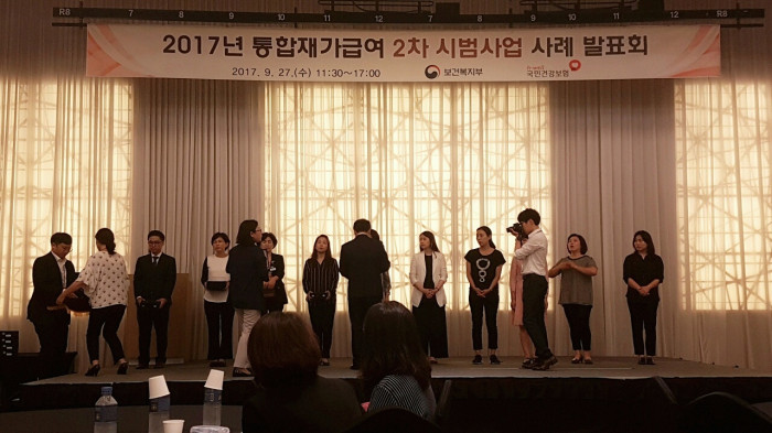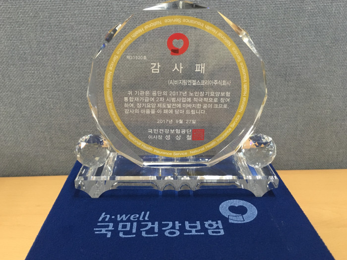 비지팅엔젤스코리아는 9월 27일 곤지암리조트에서 열린 통합재가급여 2차 시범사업 사례발표회에서 참가한 자리에서 시범사업에 참가한 우수기업에 수여하는 감사패를 받았습니다. 2017년 3월부터 실시하여 8월까지 진행된 노인장기요양보험 통합재가급여 2차 시범사업에 참가한 비지팅엔젤스코리아는 방문요양+방문목욕+방문간호를 함께 어르신들께 제공하면서 수급자, 요양보호사, 급여제공기관 등 장기요양의 각 주체가 얻게되는 효과를 체계적으로 분석했다는 평가를 받고있습니다. 통합재가급여 사업에 팀장으로 참여한 김정연 부장은 " 이번 통합재가 시범사업을 통해 얻어진 데이터들을 토대로 어르신들께 더 나은 케어서비스를 제공할수 있도록 노력하겠다." 라고 밝혔습니다. 국민건강보험공단은 지난해부터 실시해온 통합재가급여 시범사업을 내년에도 계속 이어서 진행해 효과적으로 장기요양보험 사업을 운영해가겠다고 밝혔습니다.