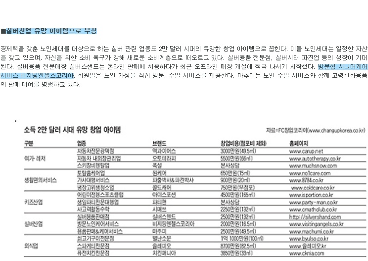 VA소식 미디어 지점 활동 및 소식 채용 채용 신청서 제목[조선일보 경제] 소득 2만 달러 시대… 레저·실버 등 서비스업 늘어난다2020-04-12 17:28카테고리신문작성자비지팅엔젤스 코리아 Information2008.03.11 목록 댓글 [0] 더보기이전[아시아투데이] 프랜차이즈 블루오션 '서비스업'비지팅엔젤스 코리아 Information2020-04-12다음[창업경영신문] <뉴비즈니스> 방문형 시니어케어 창업비지팅엔젤스 코리아 Information2020-04-12 Powered by MangBoard | 망보드 스토어