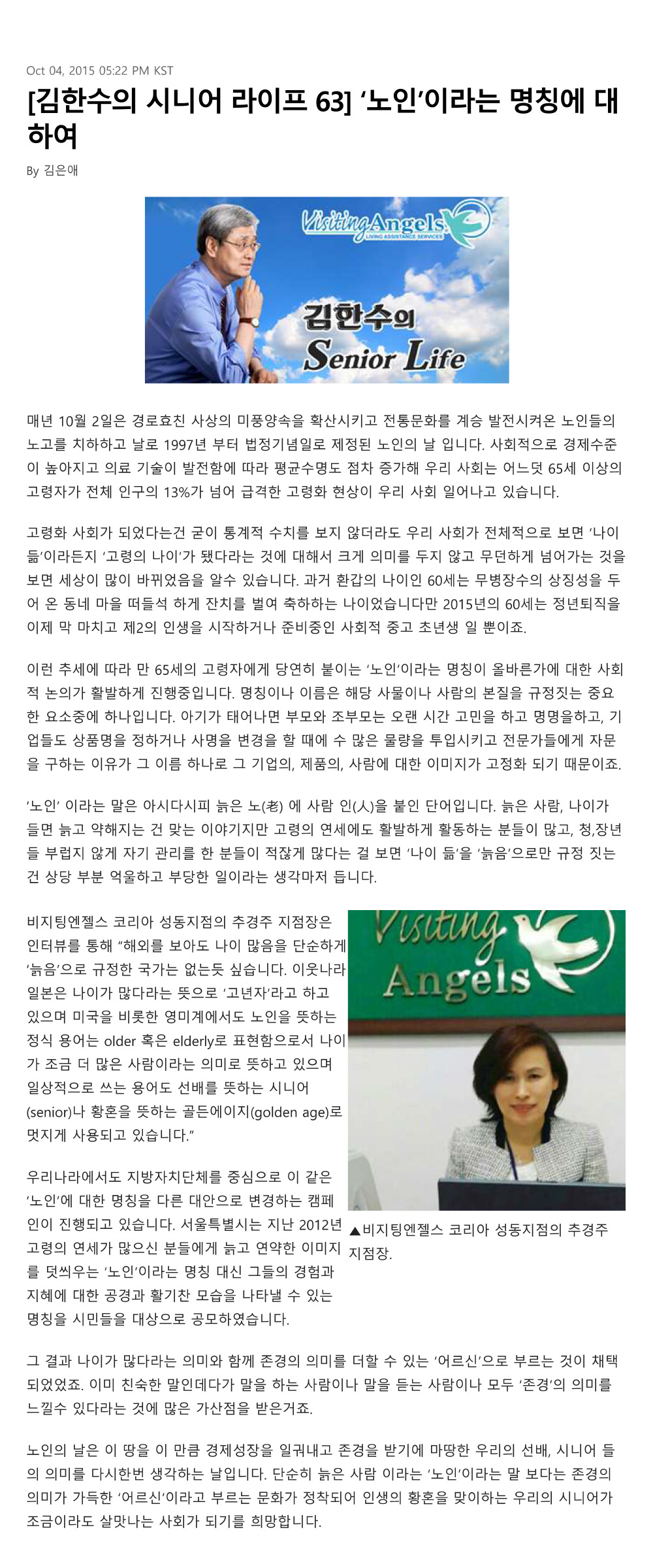 VA소식 미디어 지점 활동 및 소식 채용 채용 신청서 제목[크리스천 투데이 칼럼 63] '노인' 이라는 명칭에 대하여2021-08-11 15:44카테고리칼럼작성자비지팅엔젤스 코리아 Information 목록 댓글 [0] 더보기이전[크리스천 투데이 칼럼 64] 환자 그리고 그 가족들의 아픔, 치매비지팅엔젤스 코리아 Information2021-08-11다음[크리스천 투데이 칼럼 62] 6복에 대해 아시나요?비지팅엔젤스 코리아 Information2021-08-11 Powered by MangBoard | 망보드 스토어