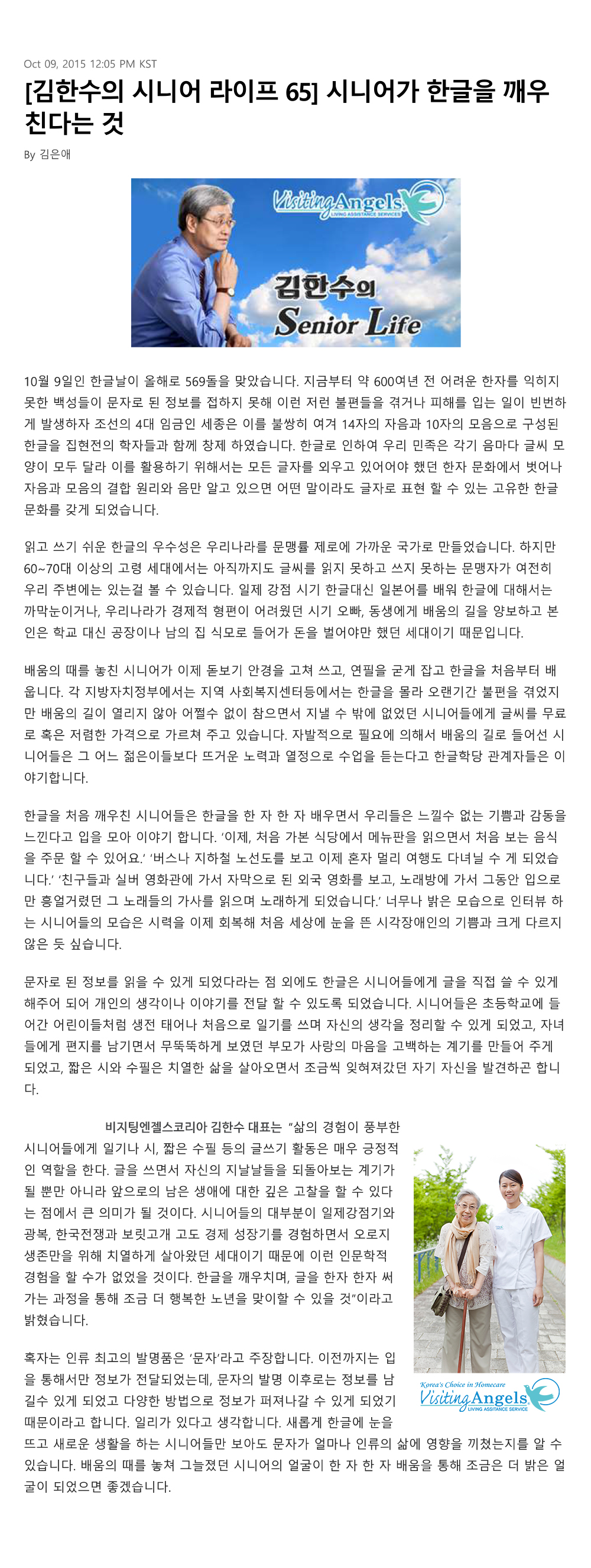 VA소식 미디어 지점 활동 및 소식 채용 채용 신청서 제목[크리스천 투데이 칼럼 65] 시니어가 한글을 깨우친다는 것2021-08-11 16:01카테고리칼럼작성자비지팅엔젤스 코리아 Information 목록 댓글 [0] 더보기이전[크리스천 투데이 칼럼 66] 로봇이 시니어에게 말을 걸어올 때비지팅엔젤스 코리아 Information2021-08-11다음[크리스천 투데이 칼럼 64] 환자 그리고 그 가족들의 아픔, 치매비지팅엔젤스 코리아 Information2021-08-11 Powered by MangBoard | 망보드 스토어