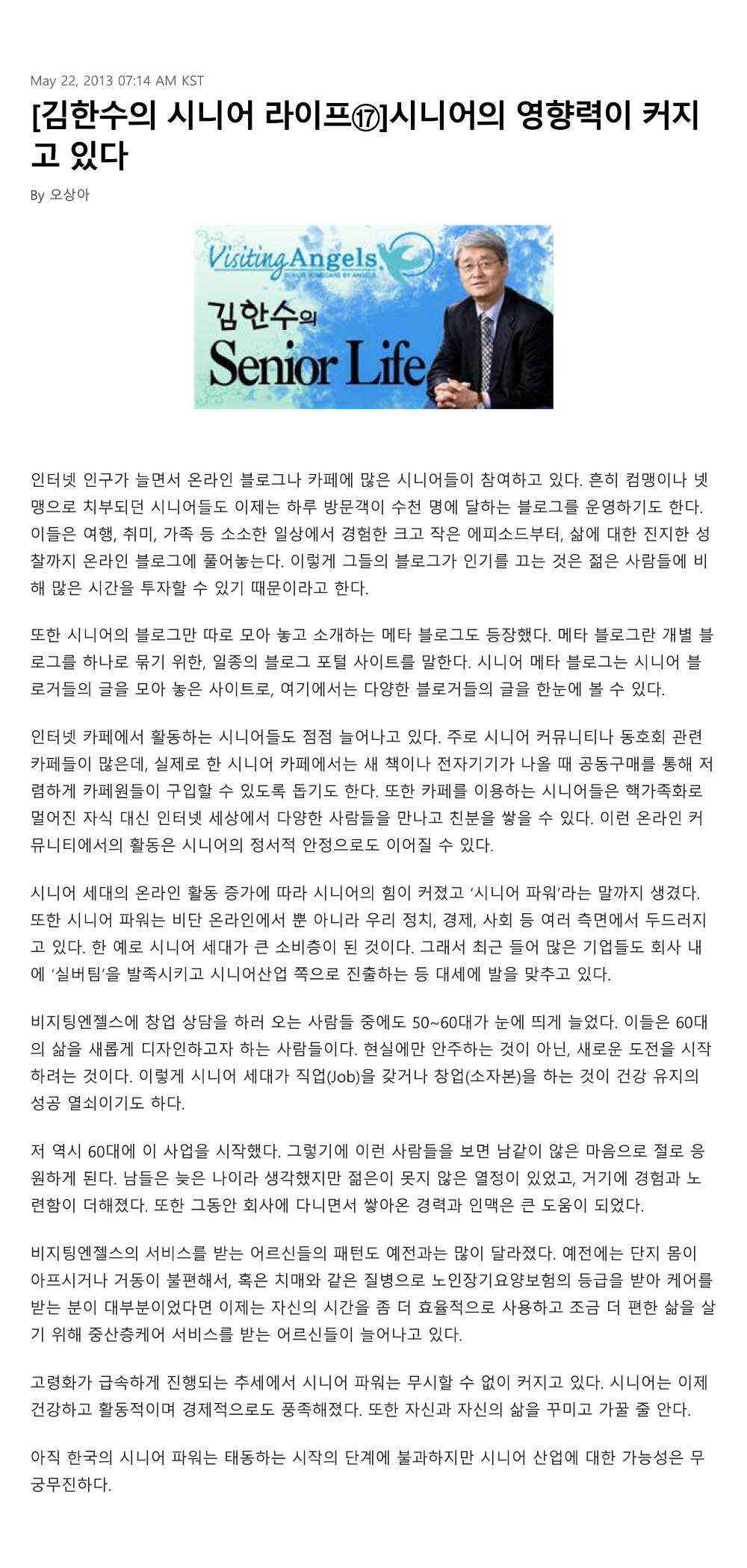 제목[크리스천 투데이 칼럼 17] 시니어의 영향력이 커지고 있다2021-07-20 15:43