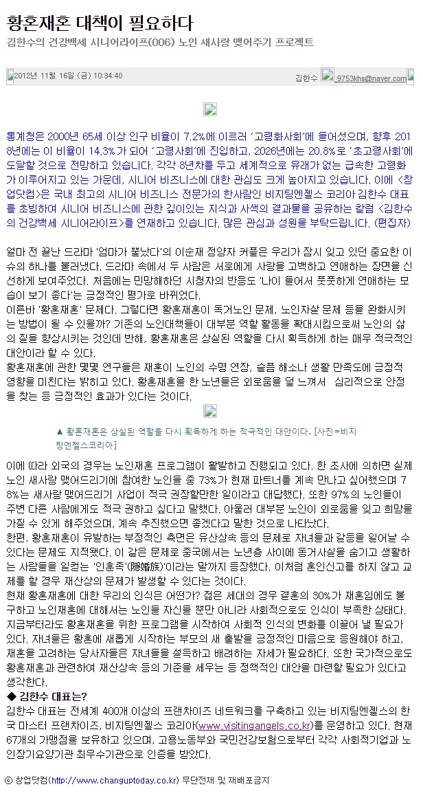 제목[창업닷컴 칼럼 006] 황혼재혼 대책이 필요하다2021-04-09 11:32
