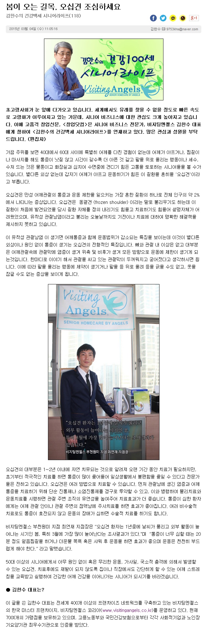 VA소식 미디어 지점 활동 및 소식 채용 채용 신청서 제목[창업닷컴 칼럼 118] 봄이 오는 길목, 오십견 조심하세요2021-06-23 14:07카테고리칼럼작성자비지팅엔젤스 코리아 Information 목록 댓글 [0] 더보기이전[창업닷컴 칼럼 119] 할머니가 해주신 음식은 왜 짜고 달까?비지팅엔젤스 코리아 Information2021-06-23다음[창업닷컴 칼럼 117] 시니어들의 명절 증후군 극복법비지팅엔젤스 코리아 Information2021-06-23 Powered by MangBoard | 망보드 스토어