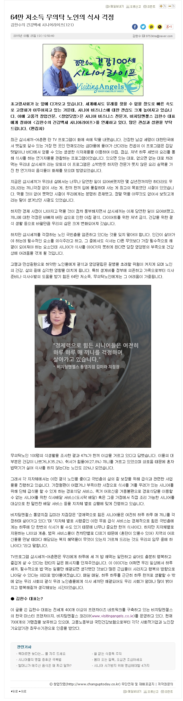 제목[창업닷컴 칼럼 121] 64만 저소득 무의탁 노인의 식사 걱정2021-06-23 14:21