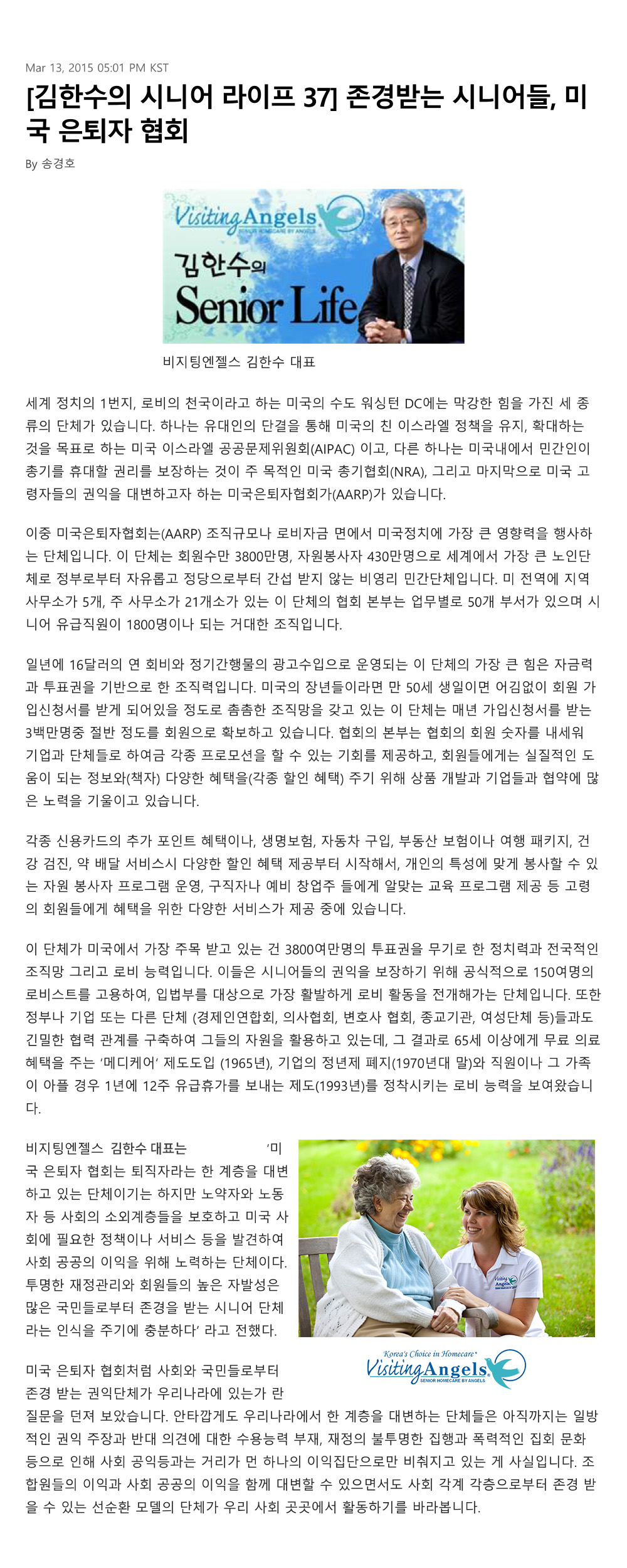 VA소식 미디어 지점 활동 및 소식 채용 채용 신청서 제목[크리스천 투데이 칼럼 37] 존경받는 시니어들, 미국 은퇴자 협회2021-07-20 18:28카테고리칼럼작성자비지팅엔젤스 코리아 Information 목록 댓글 [0] 더보기이전[크리스천 투데이 칼럼 38] 고령화와 노인 빈곤비지팅엔젤스 코리아 Information2021-07-21다음[크리스천 투데이 칼럼 36] 시니어 여가의 시작, 노인복지관비지팅엔젤스 코리아 Information2021-07-20 Powered by MangBoard | 망보드 스토어