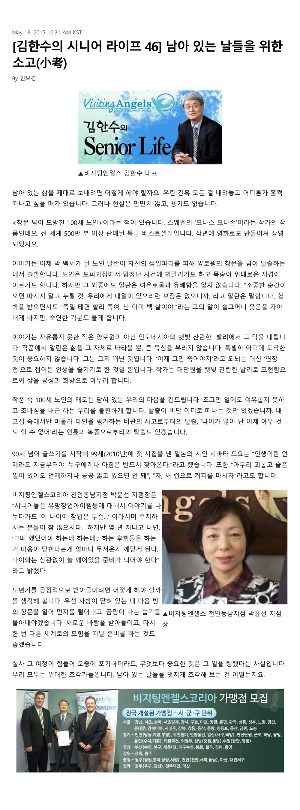 VA소식 미디어 지점 활동 및 소식 채용 채용 신청서 제목[크리스천 투데이 칼럼 46] 남아있는 날들을 위한 소고(小考)2021-08-11 14:51카테고리칼럼작성자비지팅엔젤스 코리아 Information 목록 댓글 [0] 더보기이전[크리스천 투데이 칼럼 47] 부부는 어딘가 닮아 있다비지팅엔젤스 코리아 Information2021-08-11다음[크리스천 투데이 칼럼 45] 5월에는 사랑하게 하소서비지팅엔젤스 코리아 Information2021-08-11 Powered by MangBoard | 망보드 스토어