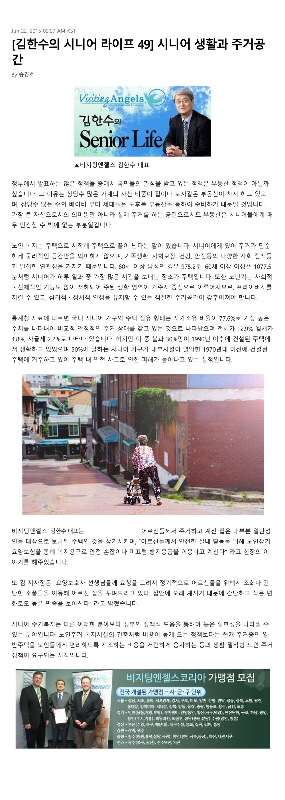 VA소식 미디어 지점 활동 및 소식 채용 채용 신청서 제목[크리스천 투데이 칼럼 49] 시니어 생활과 주거공간2021-08-11 14:55카테고리칼럼작성자비지팅엔젤스 코리아 Information 목록 댓글 [0] 더보기이전[크리스천 투데이 칼럼 50] 노인 폭력성의 증가비지팅엔젤스 코리아 Information2021-08-11다음[크리스천 투데이 칼럼 48] 아름다운 동거 '룸셰어링'비지팅엔젤스 코리아 Information2021-08-11 Powered by MangBoard | 망보드 스토어