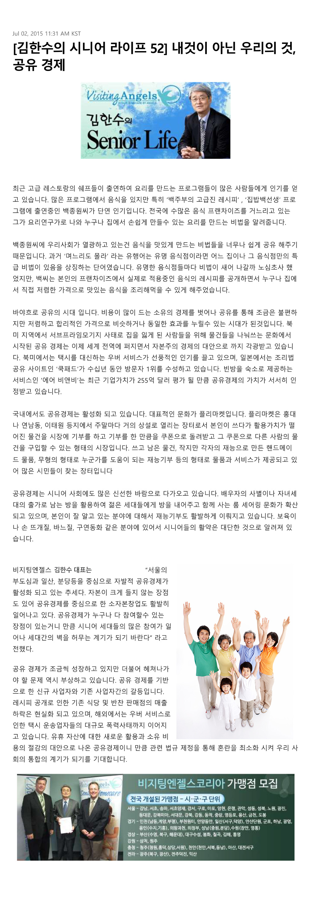 VA소식 미디어 지점 활동 및 소식 채용 채용 신청서 제목[크리스천 투데이 칼럼 52] 내 것이 아닌 우리의 것, 공유경제2021-08-11 15:01카테고리칼럼작성자비지팅엔젤스 코리아 Information 목록 댓글 [0] 더보기이전[크리스천 투데이 칼럼 54] 조용한 위험, 한여름의 열사병비지팅엔젤스 코리아 Information2021-08-11다음[크리스천 투데이 칼럼 51] 원로가 사라진 시대비지팅엔젤스 코리아 Information2021-08-11 Powered by MangBoard | 망보드 스토어