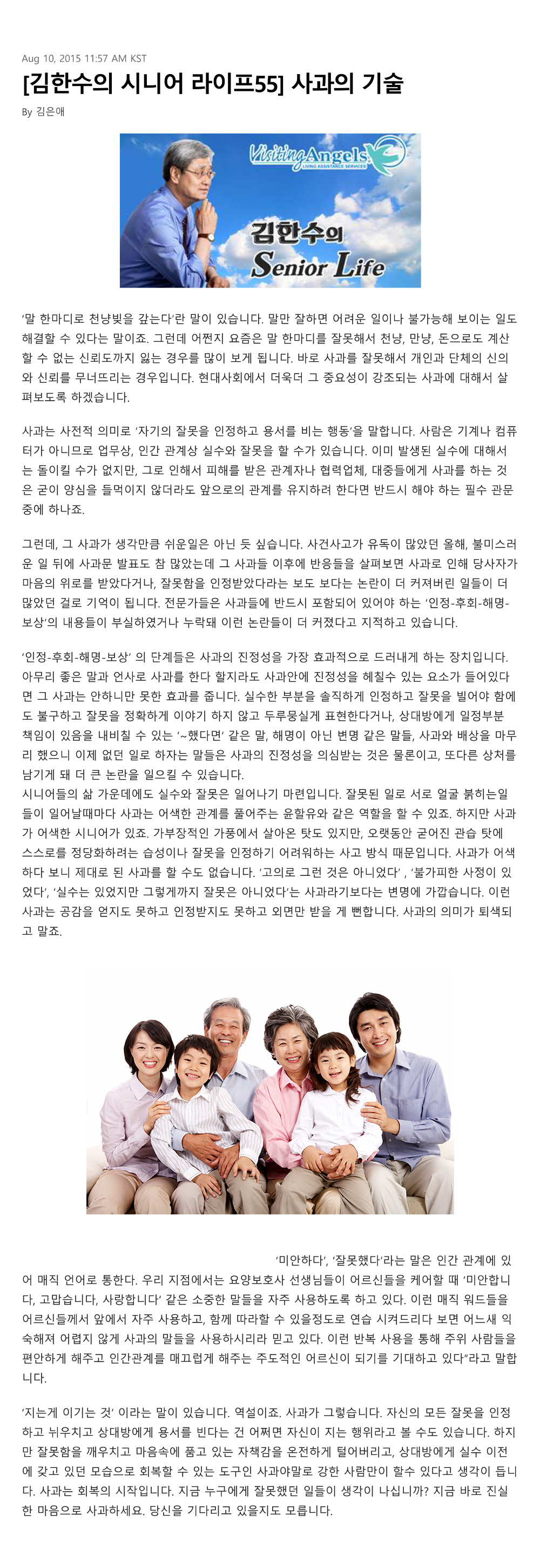 VA소식 미디어 지점 활동 및 소식 채용 채용 신청서 제목[크리스천 투데이 칼럼 55] 사과의 기술2021-08-11 15:05카테고리칼럼작성자비지팅엔젤스 코리아 Information 목록 댓글 [0] 더보기이전[크리스천 투데이 칼럼 56] 경청하는 자세비지팅엔젤스 코리아 Information2021-08-11다음[크리스천 투데이 칼럼 54] 조용한 위험, 한여름의 열사병비지팅엔젤스 코리아 Information2021-08-11 Powered by MangBoard | 망보드 스토어