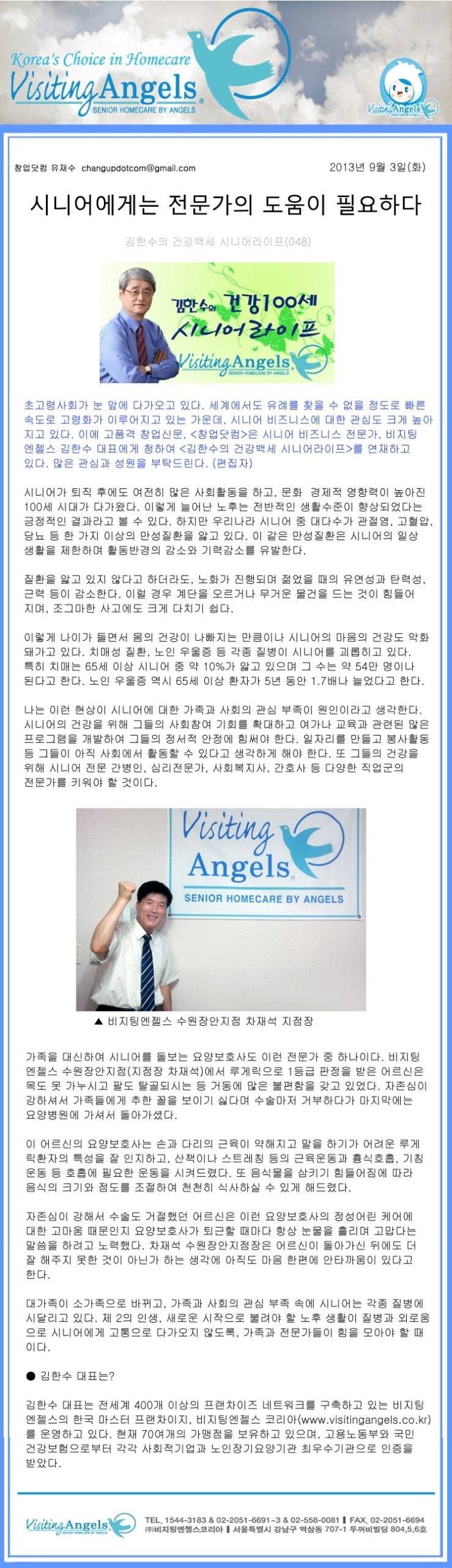 VA소식 미디어 지점 활동 및 소식 채용 채용 신청서 제목[창업닷컴 칼럼 048] 시니어에게는 전문가의 도움이 필요하다2021-06-22 10:46카테고리칼럼작성자비지팅엔젤스 코리아 Information 목록 댓글 [0] 더보기이전[창업닷컴 칼럼 049] 간병자살, 간병살인에 대한 대책이 필요하다비지팅엔젤스 코리아 Information2021-06-22다음[창업닷컴 칼럼 047] 시니어 사업의 성공 제1원칙은 어르신 마음을 얻는 것비지팅엔젤스 코리아 Information2021-06-22 Powered by MangBoard | 망보드 스토어