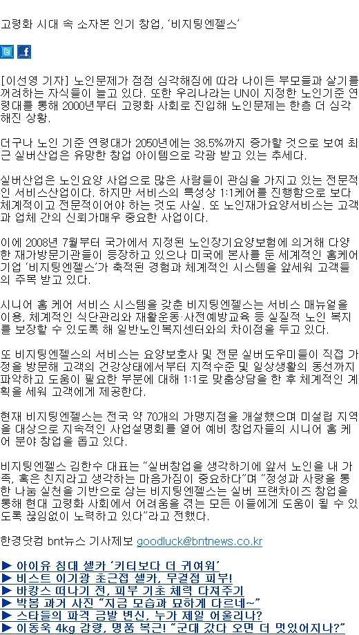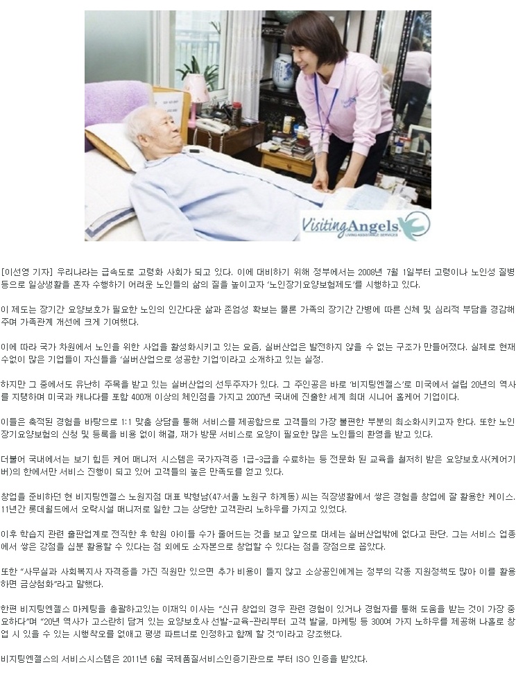 VA소식 미디어 지점 활동 및 소식 채용 채용 신청서 제목[한경 BNT뉴스] 고령화 시대에는 트렌드 사업… ‘비지팅엔젤스’가 뜬다!2020-04-10 09:18카테고리신문작성자비지팅엔젤스 코리아 Information(2011.08.05) 목록 댓글 [0] 더보기이전[한경 BNT뉴스] 고령화 시대와 함께 ‘비지팅엔젤스’가 뜨고 있다!비지팅엔젤스 코리아 Information2020-04-10다음[한경 BNT뉴스] 고령화 시대 속 소자본 인기 창업, ‘비지팅엔젤스’비지팅엔젤스 코리아 Information2020-04-10 Powered by MangBoard | 망보드 스토어