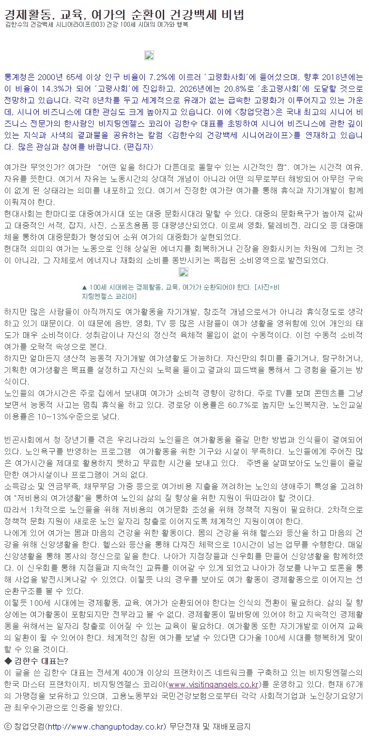 제목[창업닷컴 칼럼 003] 경제활동, 교육, 여가의 순환이 건강백세 비법2021-04-09 11:18