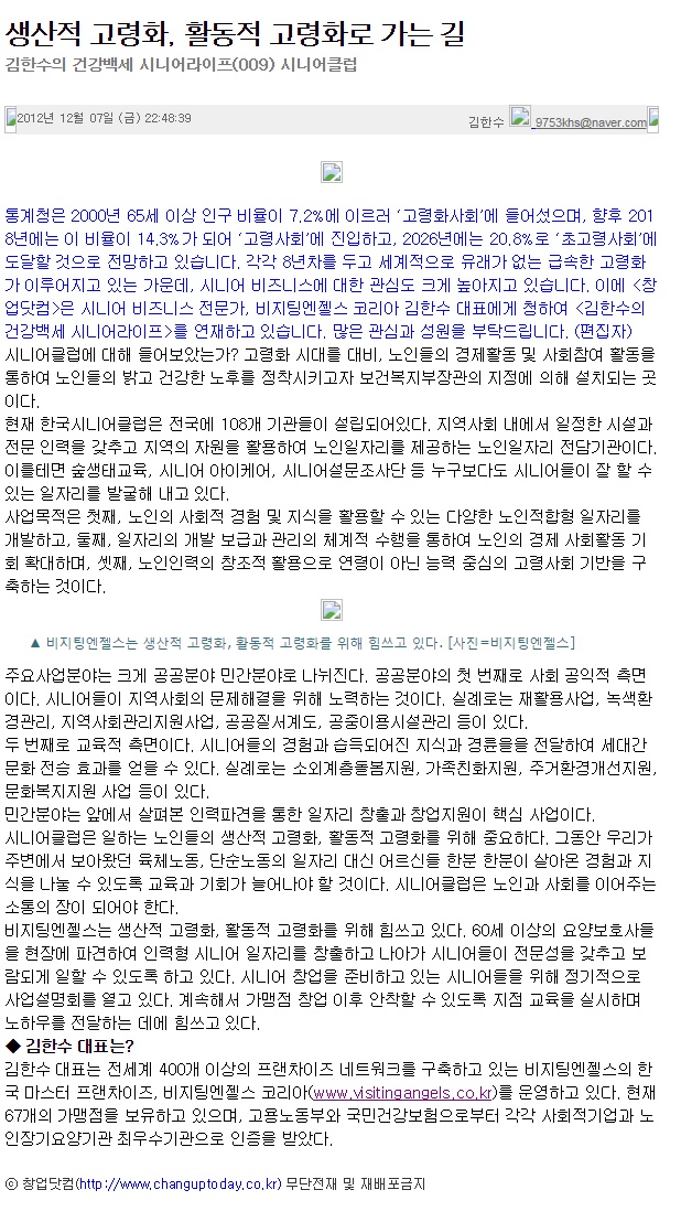 VA소식 미디어 지점 활동 및 소식 채용 채용 신청서 제목[창업닷컴 칼럼 009] 생산적 고령화, 활동적 고령화로 가는 길2021-04-09 11:42카테고리칼럼작성자비지팅엔젤스 코리아 Information(2012-12-07) 목록 댓글 [0] 더보기이전[창업닷컴 칼럼 010] 자연 속에서 사는 사람이 장수한다비지팅엔젤스 코리아 Information2021-04-09다음[창업닷컴 칼럼 008] 40~50대에 100세 준비를 시작해야 한다비지팅엔젤스 코리아 Information2021-04-09 Powered by MangBoard | 망보드 스토어