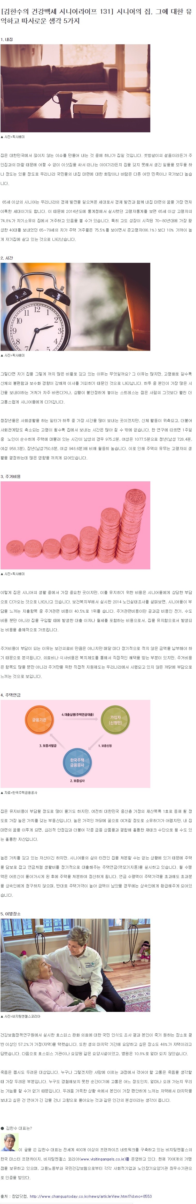 제목[창업닷컴 칼럼 131] 시니어의 집, 그에 대한 유익하고 따사로운 생각 5가지2021-06-23 17:12
