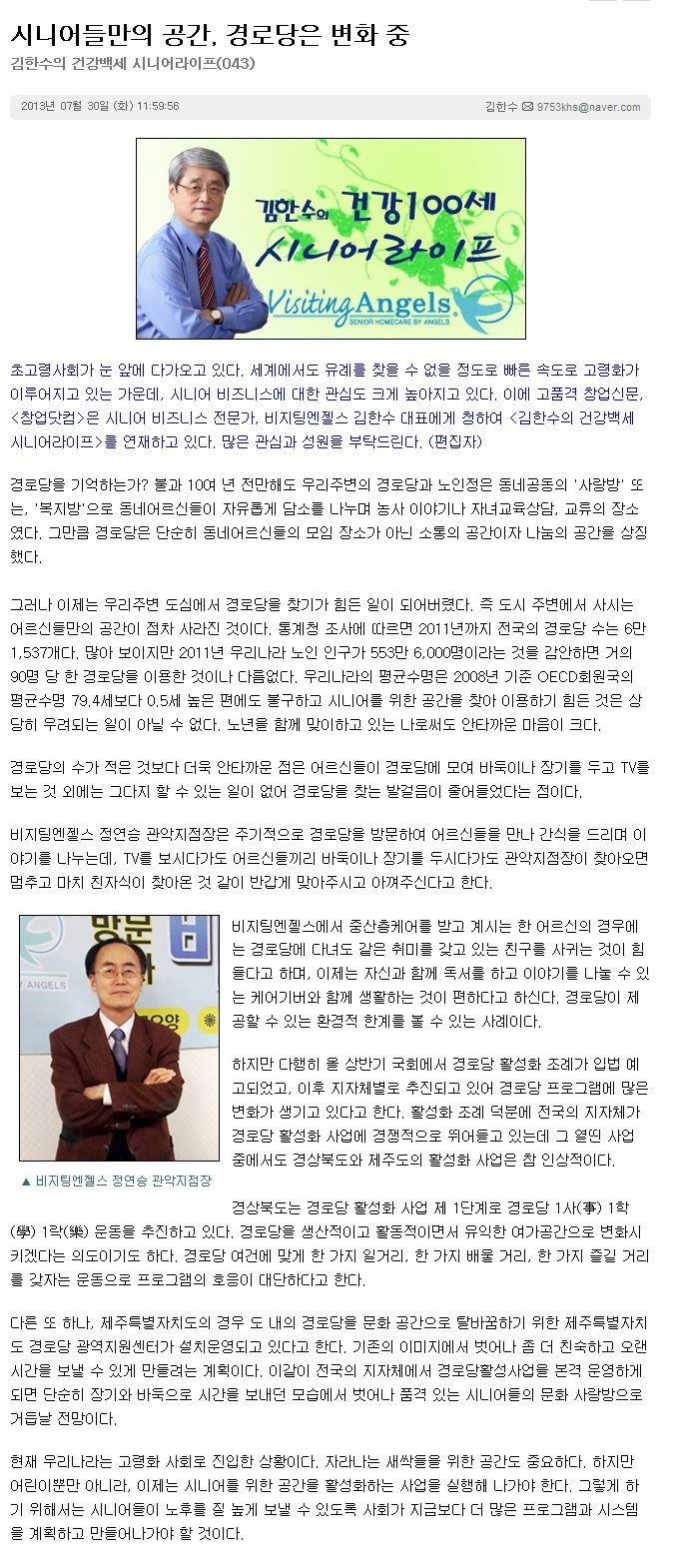 VA소식 미디어 지점 활동 및 소식 채용 채용 신청서 제목[창업닷컴 칼럼 043] 시니어들만의 공간, 경로당은 변화 중2021-04-12 16:18카테고리칼럼작성자비지팅엔젤스 코리아 Information 목록 댓글 [0] 더보기이전[창업닷컴 칼럼 044] 도울때 도와라비지팅엔젤스 코리아 Information2021-04-12다음[창업닷컴 칼럼 042] 마지막 순간까지 아낌없이 즐겨라비지팅엔젤스 코리아 Information2021-04-12 Powered by MangBoard | 망보드 스토어