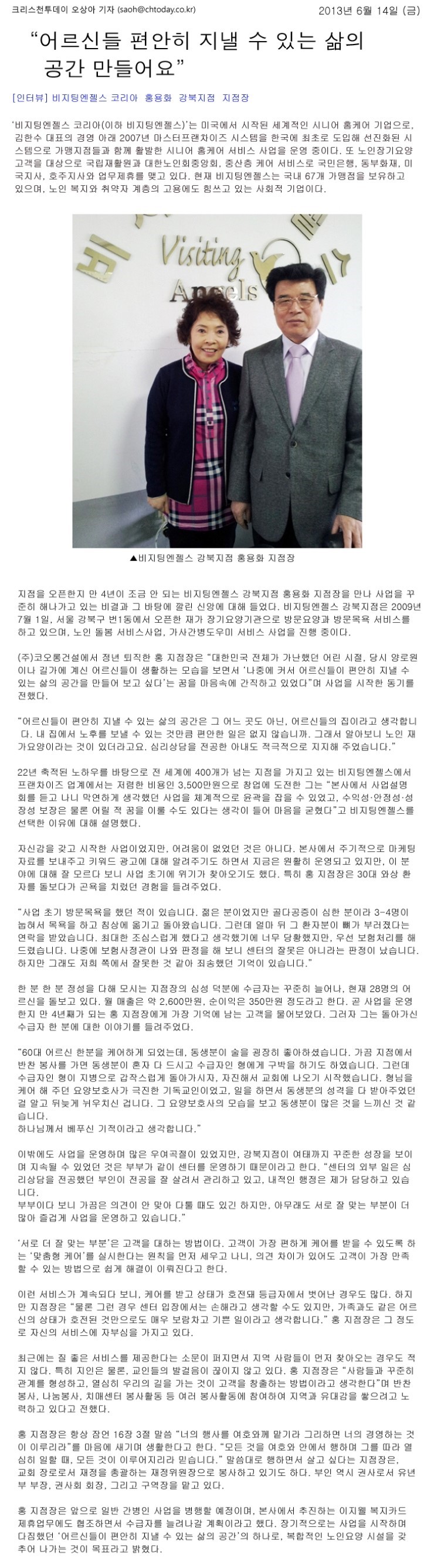 VA소식 미디어 지점 활동 및 소식 채용 채용 신청서 제목[강북지점] 어르신들 편안히 지낼 수 있는 삶의 공간 만들어요2020-06-15 16:53작성자비지팅엔젤스 코리아 Information 목록 댓글 [0] 더보기이전[삼척지점] 포기하지 않는 끈기와 인긴관계가 중요비지팅엔젤스 코리아 Information2020-06-15다음[구로지사] 봉사로 시니어 케어 앞장비지팅엔젤스 코리아 Information2020-06-15 Powered by MangBoard | 망보드 스토어