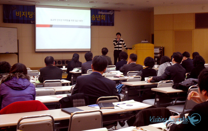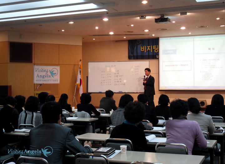 지난 11월 27일 토요일 오후 1시부터 예술의 전당에서 비지팅엔젤스 전국지점 교육이 있었습니다. 강의내용은 노무, 세무, 마케팅, 서비스, 전산 등 일정 상 빠듯했지만, 참석해주신 지점장님들 모두 뜨거운 열정을 보여주시며 강의를 들어주셨습니다.