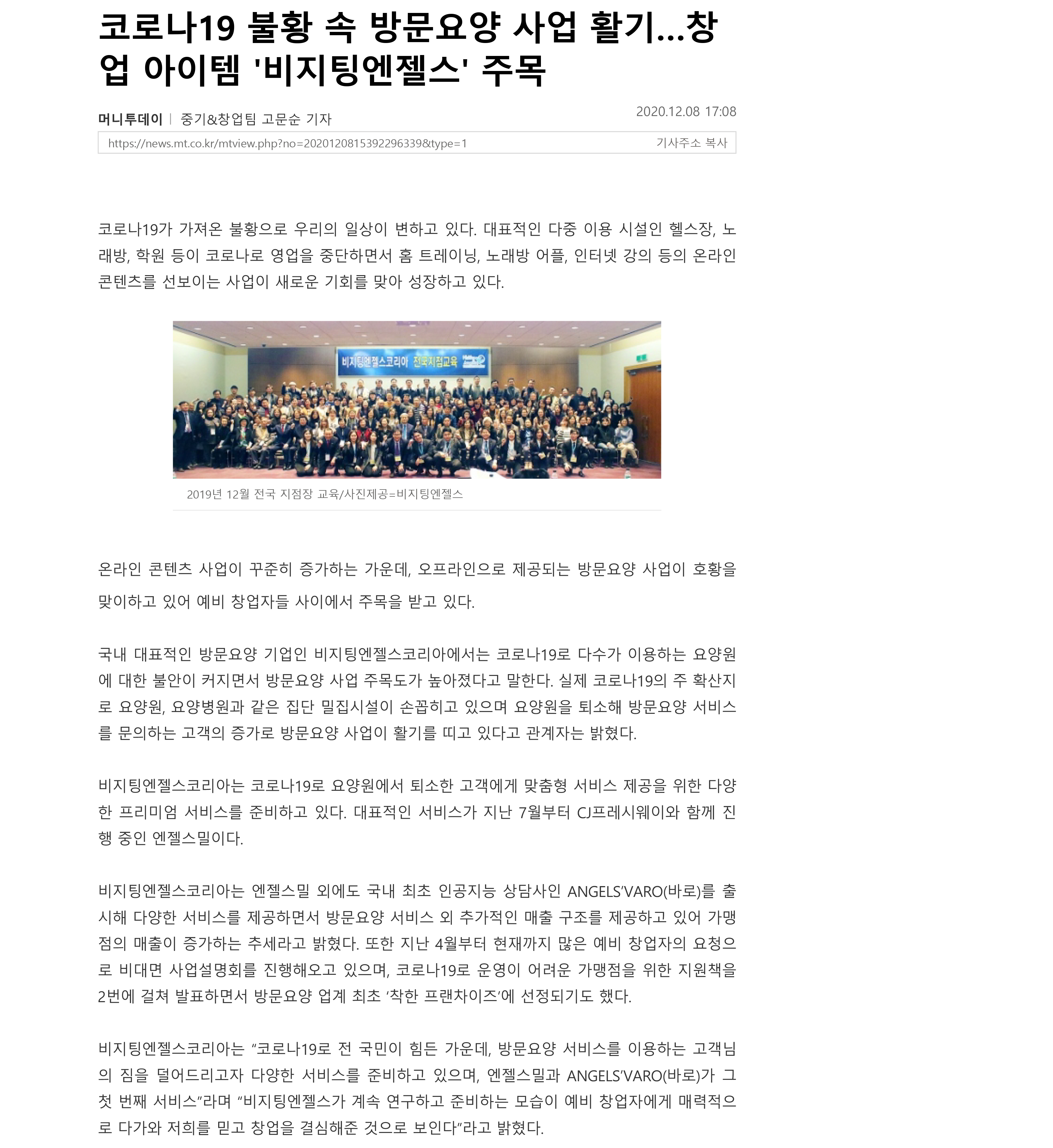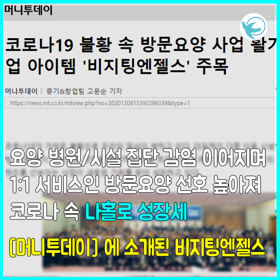 VA소식 미디어 지점 활동 및 소식 채용 채용 신청서 제목[머니투데이] 코로나 불황 속 방문요양 사업 활기...2020-12-30 17:47작성자비지팅엔젤스 코리아 Information더 자세한 정보는 위의 이미지를 클릭하시면 확인할 수 있습니다. 목록 댓글 [0] 더보기이전[인터뷰H] 비지팅엔젤스코리아 김한수 대표비지팅엔젤스 코리아 Information2020-12-30다음엔젤스밀 쿠킹클래스 개최비지팅엔젤스 코리아 Information2020-12-30 Powered by MangBoard | 망보드 스토어