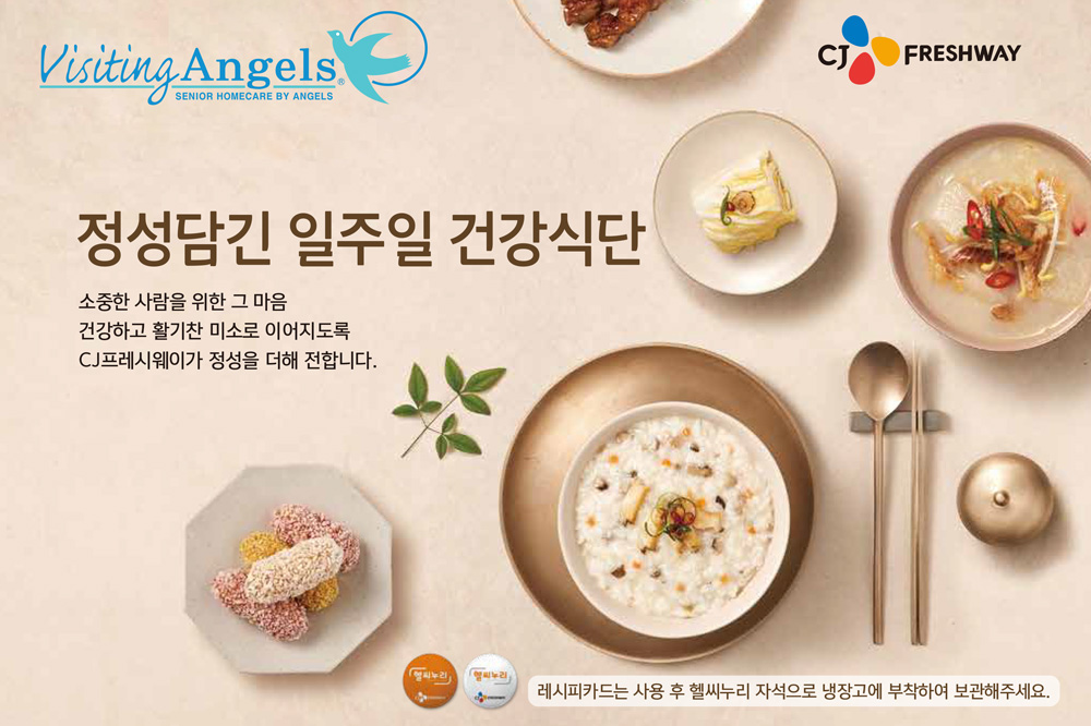 어르신의 식사도 케어의 일부분 입니다. 어르신을 위한 식자재로 준비하고, 어르신께 부족한 영양을 가득담아 준비했습니다. 부모님을 모셔오며 느꼈던 음식에 대한 걱정과 고민들, 이제 엔젤스 밀로 덜어보세요.
